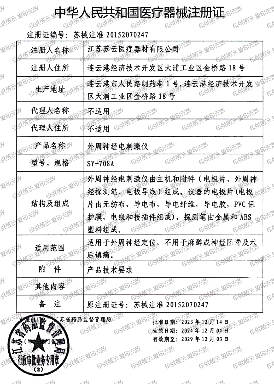 注冊證編號:蘇械注準(zhǔn)20152070247