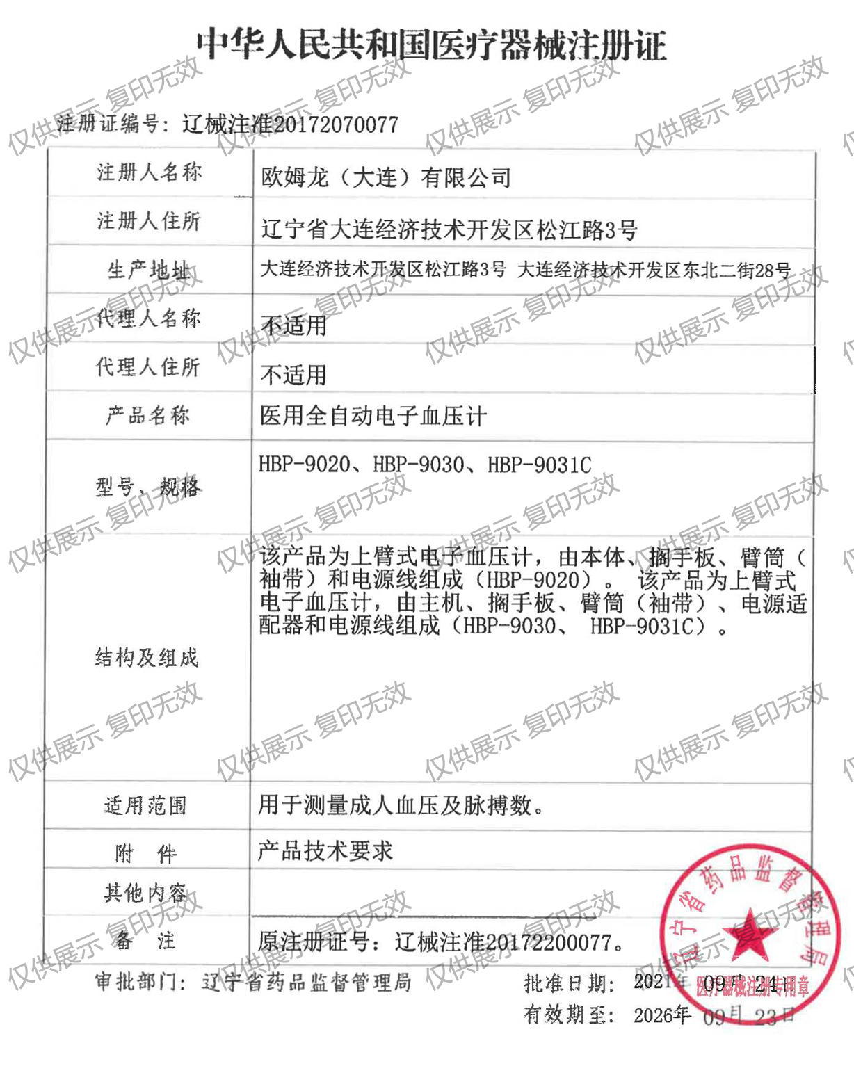 注冊(cè)證編號(hào):遼械注準(zhǔn)20172070077