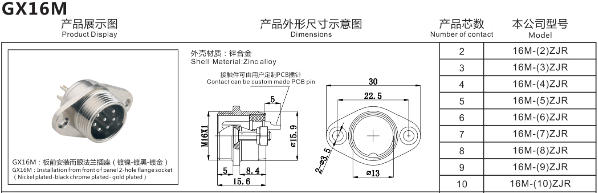 GX16菱形航空插頭